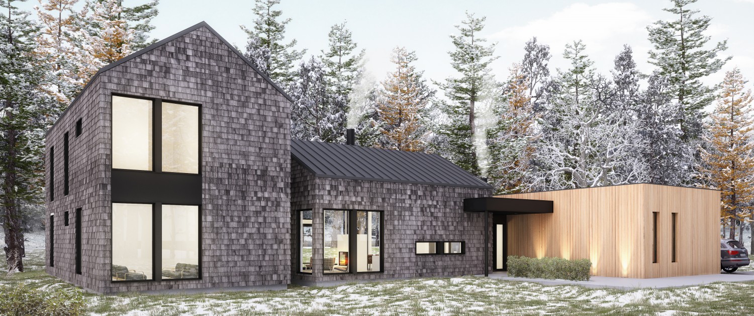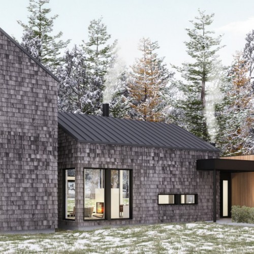 The New Classic inspiration #32 feels warm, yet contemporary, with clean lines, simple, esthetically pleasing finishes of grey shingles and natural wood, and fireplaces both inside the house and on the screened porch. A 2-car garage, plus family-friendly connecting spaces make this a home-away-from-home to be proud of, while the balcony patio and big guest room are perfect for entertaining.