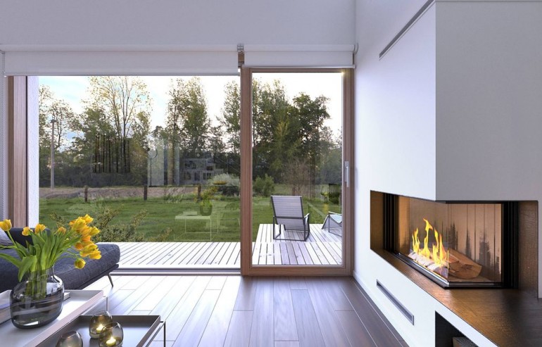 The house design of Available 6 is a perfect combination of a modern look with a fully functional interior. The house has a simple shape, which directly affects the smooth workflow. It is intended for investors who have a plot of land that allows for the implementation of a free-standing project. The building is topped with a gable roof, so its implementation does not take much time. The project belongs to the category of houses with a ridge located parallel to the road, which is often defined in development conditions. The project provides for a single garage in the body of the building, with a passage from the residential part through a practical wardrobe. Available 6 is a one-story house with an attic, which means that the day and night zones are clearly separated from each other. The living area provided for in the design will surely satisfy those who prefer spacious interiors. This zone of the house includes large glazing and an open space above the living room, thanks to which the interior looks modern and very effective. Additionally, the living room has been combined with the dining room - such a solution fits perfectly into the current arrangement trends. The kitchen is open yet slightly separated from the rest of the rooms. Thus, cooking enthusiasts can easily pursue their hobbies, and at the same time freely talk to other household members. People working at home will appreciate the fact that there is a study and a bathroom on the ground floor. An additional room is also a perfect solution if you need to spend the night. There are three spacious bedrooms in the attic. From one of them there is an entrance to an impressive loggia. On this floor there is also a bathroom, a laundry and drying room and a mezzanine - an ideal place to rest with a book. Family gatherings on sunny days will be made more pleasant by the terrace next to the house. The project was made in brick technology, thanks to which the house remains pleasantly cool in hot weather. The Available 6 project is characterized by a minimalist body with large glazing, making it an ideal choice for supporters of a modern style.