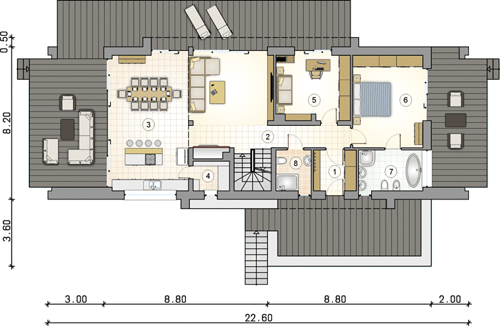 3. Pokój dzienny + jadalnia + kuchnia51,70 m2