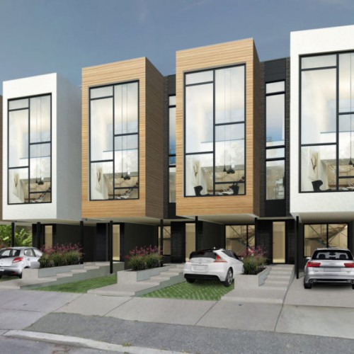 The standout feature of this inspirationis a reversal of the traditional story configuration, with the bedrooms in the basement and ground floor, and the kitchen, dining room and office situated on the top floor. The first floor has a double-height master bedroom with a curtain glass wall looking out onto the street.