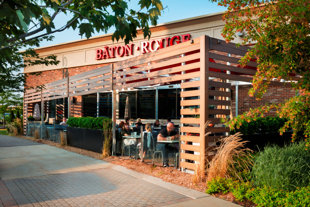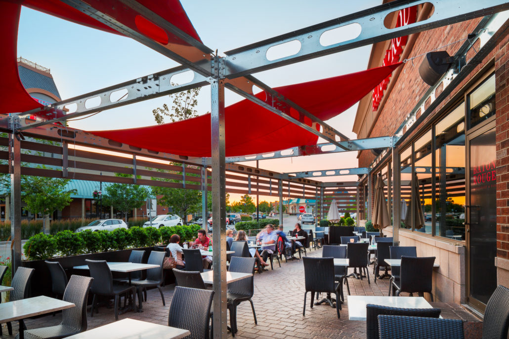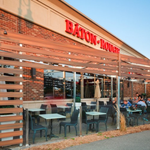 The challenge we faced when we took on this unusual project was to create a unique street-front patio for a small restaurant in a shopping centre. The design had to blend with the restaurant itself and the small space available.