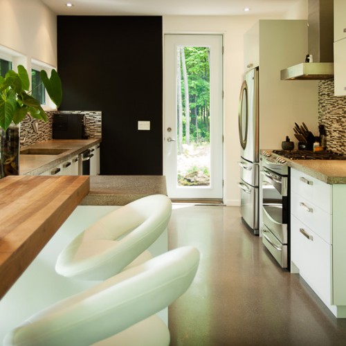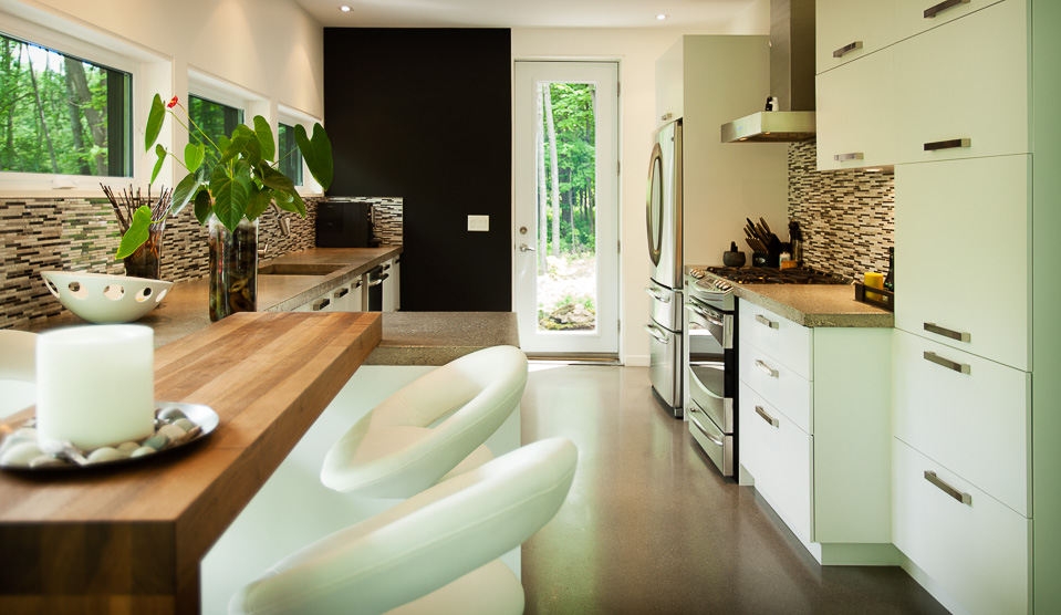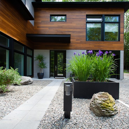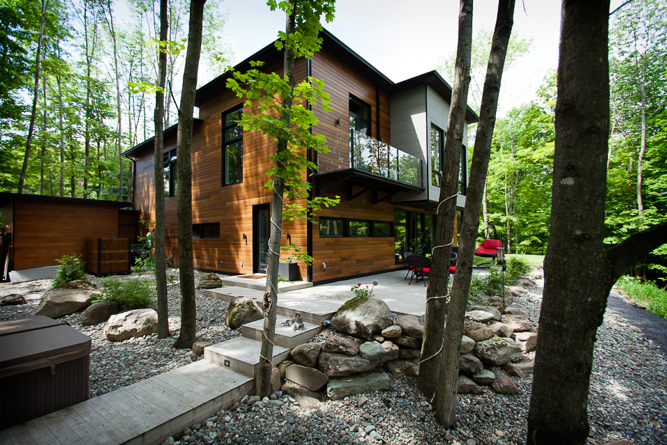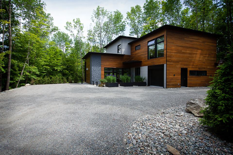 The many wide windows are offering breathtaking views on the surrounding nature and a lot of natural light throughout the day. Clean lines and some materials like stone, wood and other natural finishes are adding to the comfort and to the contemporary look of this two story country home.